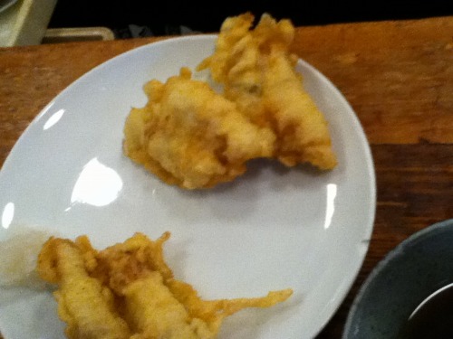 ちょいと珍しいホタルイカの天ぷら。塩か天つゆでいただく。大衆居酒屋なため、大味っぽいものの、何気に、ここの天ぷらはさっぱりと揚げてくれていて美味い。油がもたれるような感じでは揚げておらず、衣も薄め。