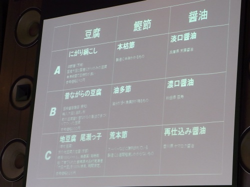 かつおぶしは旨みと香りを持ってますよ。なので、淡白な豆腐とよく合いますよってスライド。
